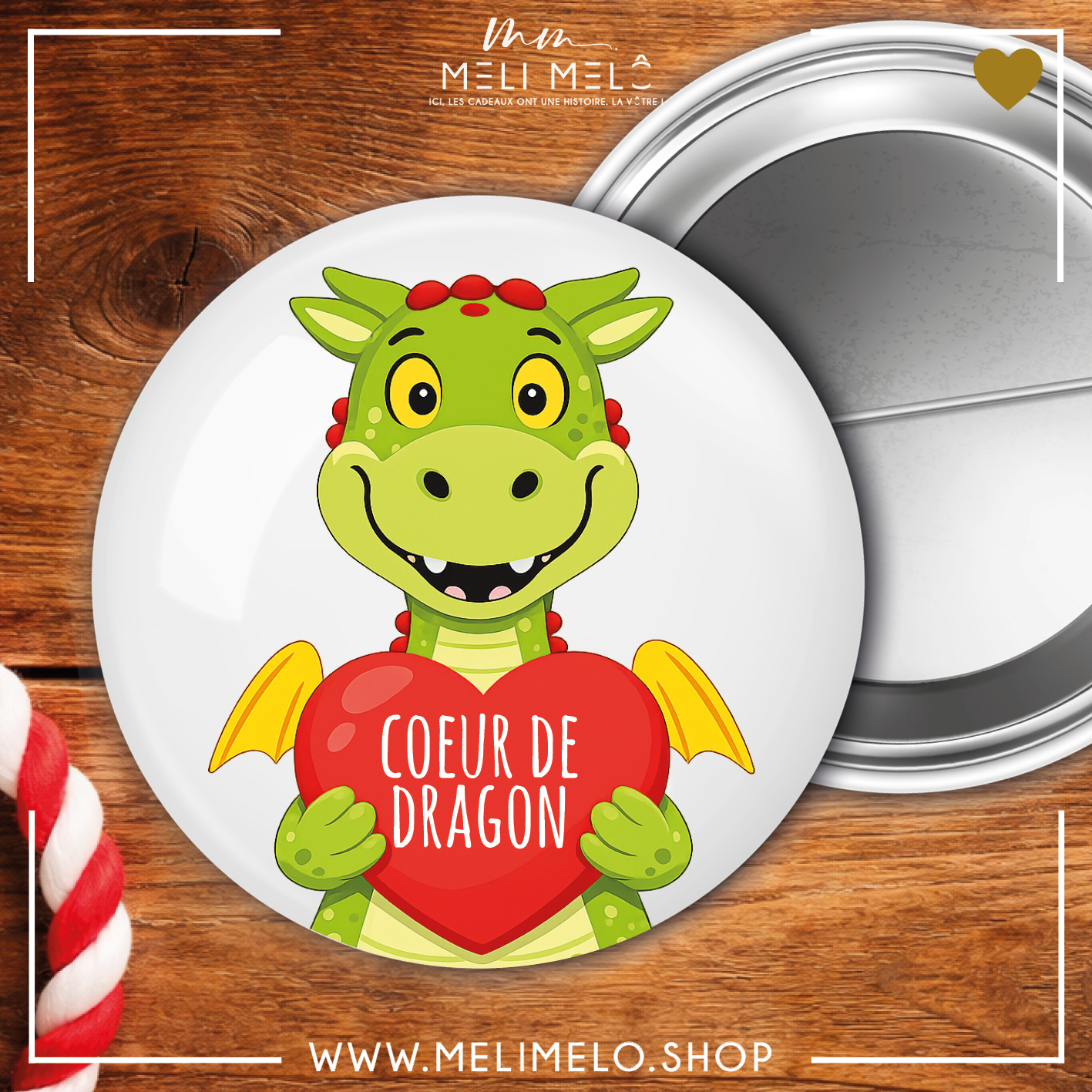 Badge, magnet ou porte-clés – Coeur de Dragon
