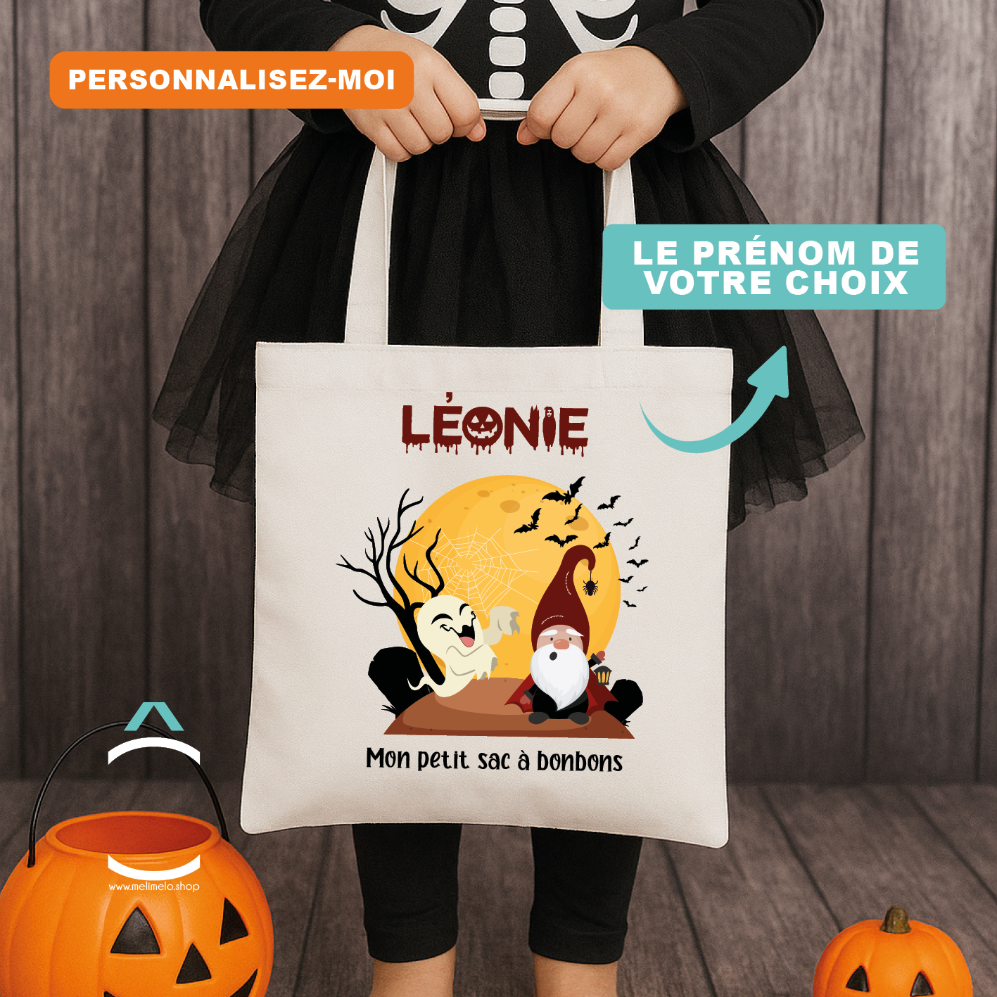 Cette année, la fête d’Halloween sera « monstrueusement » plus amusante ! Ce sac personnalisé avec le prénom de votre enfant, lui permettra d’y glisser sa récolte de friandises et de bonbons!